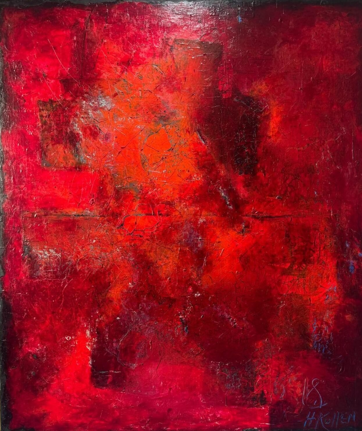 Pour ce natif de Fès en 1955, la peinture est une affaire sérieuse. Sans se prendre au sérieux, l’artiste est rigoureux. Il ne laisse rien au hasard. La toile est travaillée par couches. Elle prend vie en strates qui se superposent. Le final donne une composition de f ormes et de lumières qui rendent compte du peintre lui-même. « Ma peinture est mon reflet à toutes les périodes de ma vie, les sombres comme les plus heureuses». Hassan Kouhen est également un artiste discret qui vit loin des f eux de la rampe et du succès mondain. Valeur sûre des Arts plastiques marocains, il occupe aujourd’hui une place de choix chez les galeristes américains. Hassan Kouhen joue aussi les ambassadeurs d’une culture marocaine qu’il met en avant là ou son art le porte.